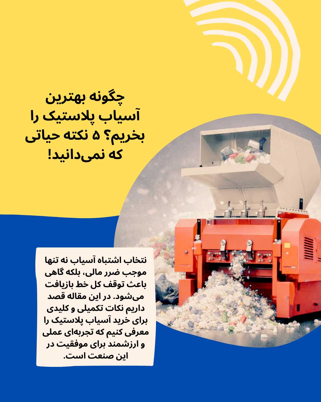 ما به لطف خداوند با داشتن تیم مجرب و حرفه ای در زمینه تولید گرانول و کامپاند از مواد نو و بازیافتی و ساخت دستگاهها به چند روش به صاحبان کسب و کارها و سرمایه گزاران و علاقمندان صنعت پلاستیک و بازیافت پلاستیک ها کمک می کنیم.
